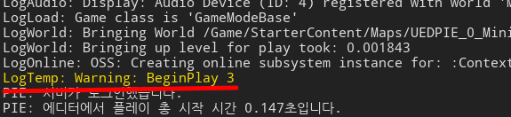 UE_LOG(LogTemp, Warning, TEXT("BeginPlay"));