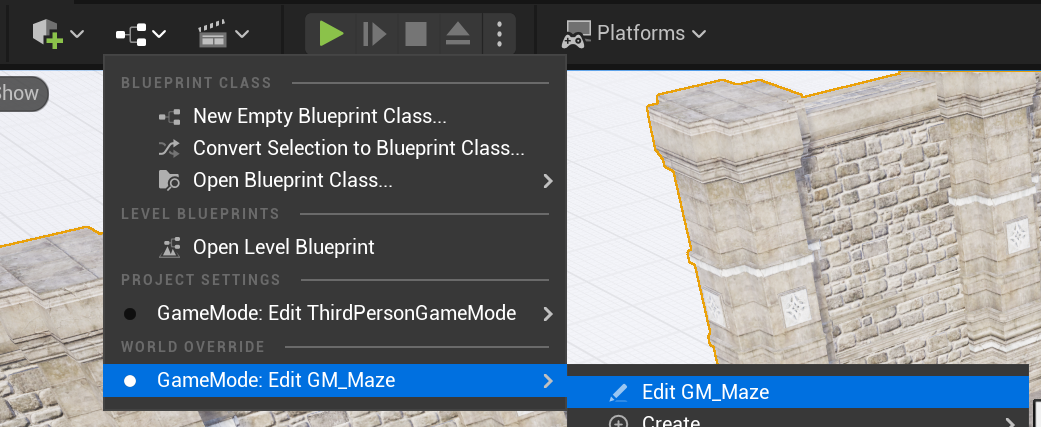 월드 세팅에서 자신이 만든 게임모드를 설정해줍니다. 이름은 각자 자신이 만든걸로 지정해줍니다.