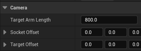 Target Arm Lenghth를 800으로 해주고 캐릭터를 내려다 보다록 transform rotationdml 값을 0,-45,+45로 설정해줍니다. Do Collision Test를 꺼 충돌테스트 꺼줍니다.