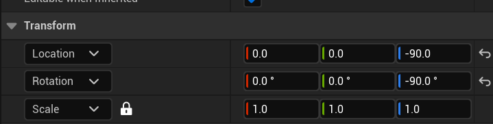 Transform을 설정해 메시위 위치와 방향을 맞춰줍니다.