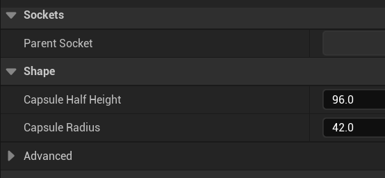 캡슐컴포넌트를 선택하고 Height와 Radius를 변경해줍니다.
