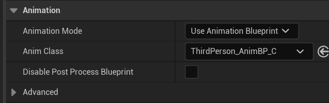 메시컴포넌트를 선택해서 메시와 Anim class를 설정해줍니다.