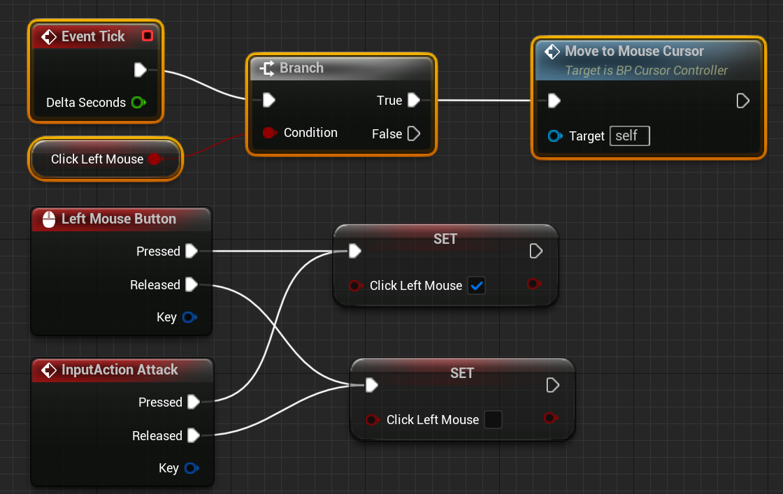 블루프린트를 열고 좌클릭 상태를 저장할 변수를 만든다. 클릭하는 동안만 이동할 것이다.