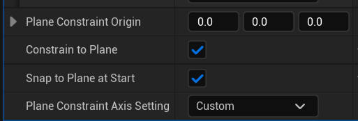 Constrain to Plane을 체크해 이동을 평면으로 제한하고 Snap to Plane at Start를 체크해 플레이 시작시 평면에 붙여줍니다.