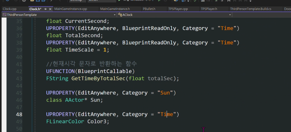 결과물 1. 시간 시스템 만들기 (GameState) 시간 시스템은 두 개 변수가 필요하다. 하나는 하루의 길이, 다른 하나는 현재 게임 시간이다. 이 때, 현재 시간은 런타임(게임이 실행되고 있을 때)에 어