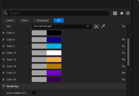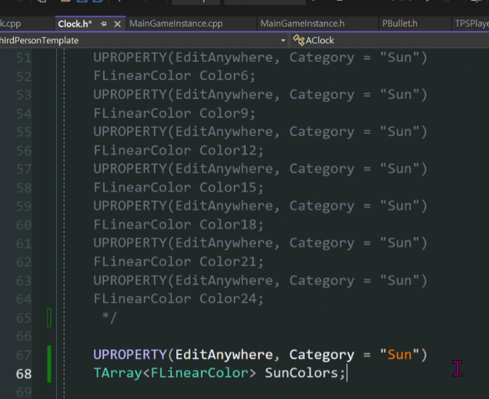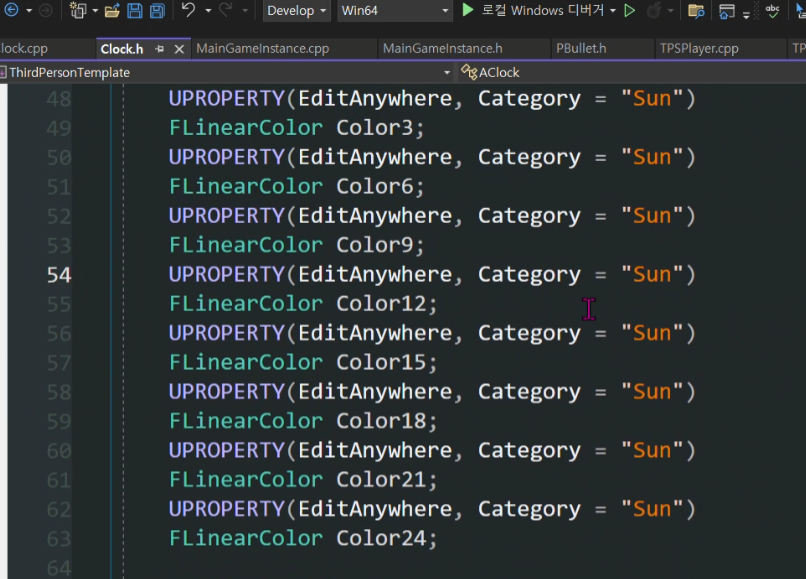 어제 FLinearColor SunColor1~24를 어레이로 만듬