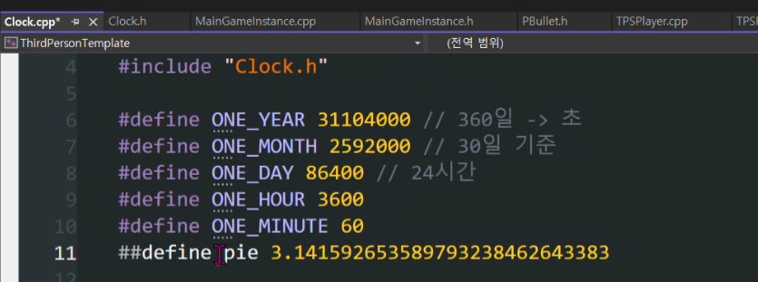 헤더파일에 define정의 pie는 필요없