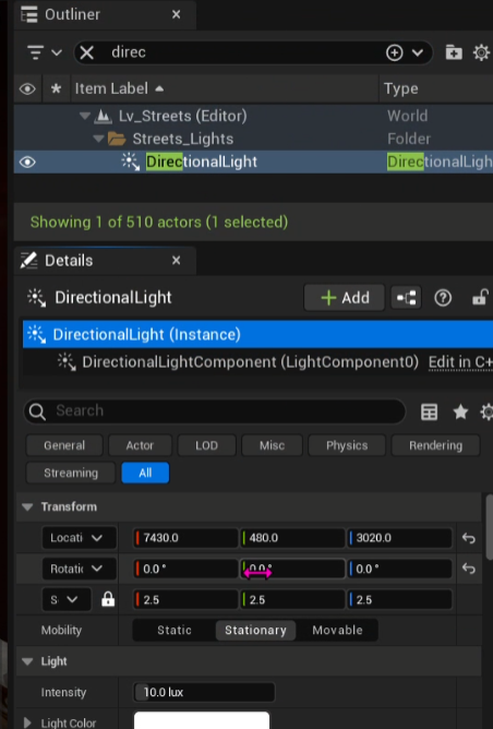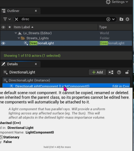 Directional Light는 액터와 컴포넌트가 다 있다.