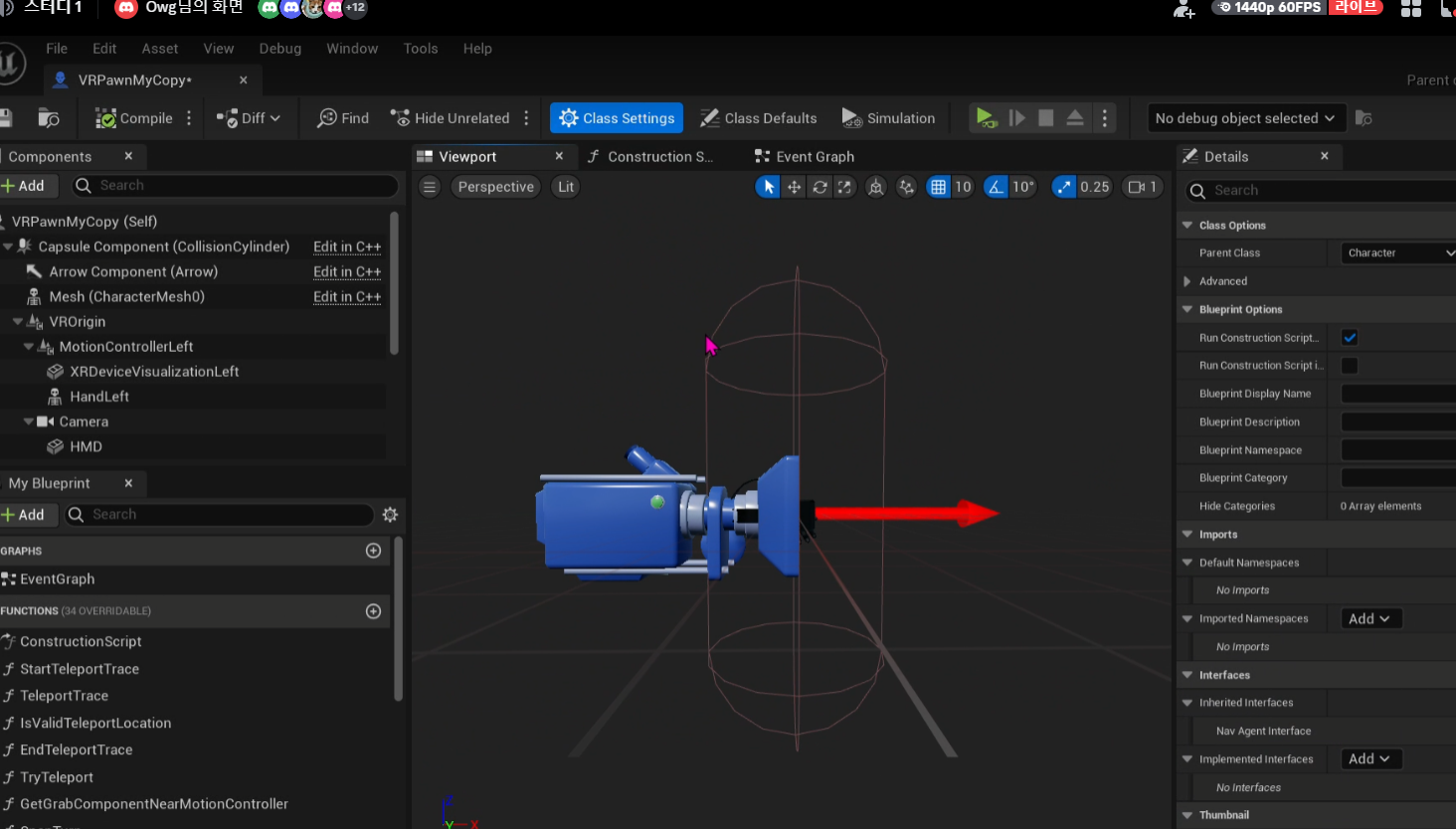 HMD가 최우선인데 CapsuleComponent가 거슬린다. 실시간으로 맞춰줘야함.