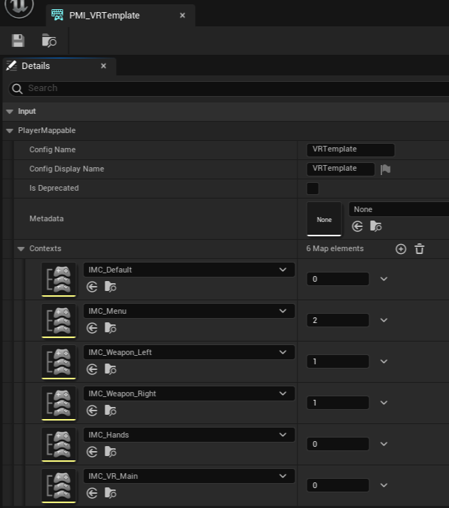 VR Input은 컨트롤러 입력이 많은 만큼 InputAction도 많지만 IMC로 많다. 상황에 맞는 IMC를 선택해주는 PMI_VRTemplate가 필요하다 우선순위를 지정해주는것 같다.