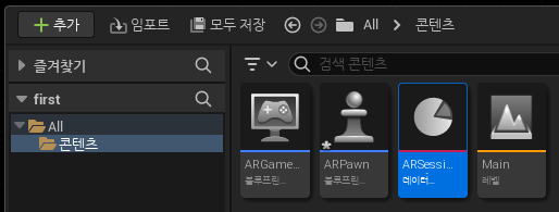 다시 우클릭 해서 Start AR Session을 추가합니다.