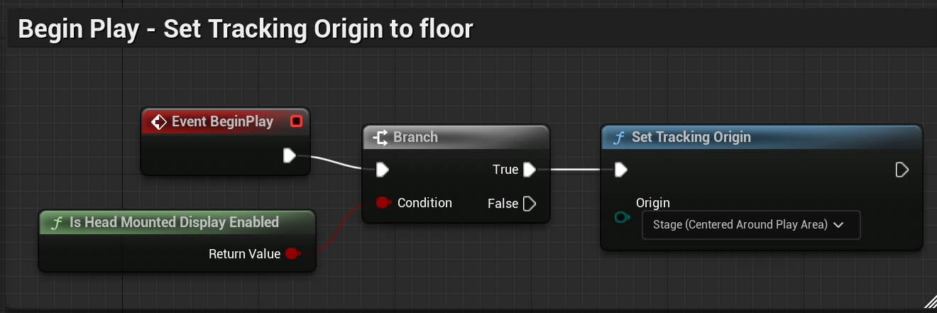 BeginPlay 이벤트와 Set Tracking Origin을 연결합니다.