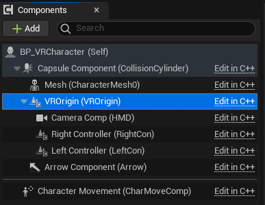 결론부터 말하면 VR은 HMD가 최상위로 그 밑에 카메라및 VR컴포넌트를 붙여야한다. 그리고 최상위 RootComponent인 CapsuleComponent가 HDM를 따라가게 위치와 사이즈를 조정해야 한다. 그리고 HMD의 위치는 최초 설정시 바닥에 놓고 높이를 초기화하기때문에 카메라의 위치는 0,0으로 설정해야 한다.