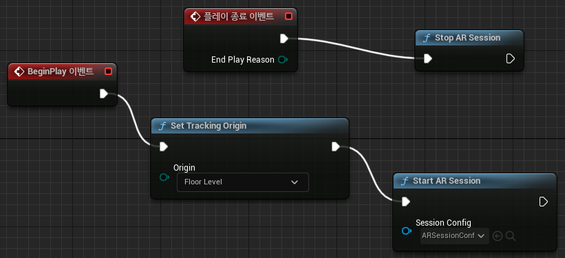 Set Tracking Origin과 Start AR Session을 연결합니다.