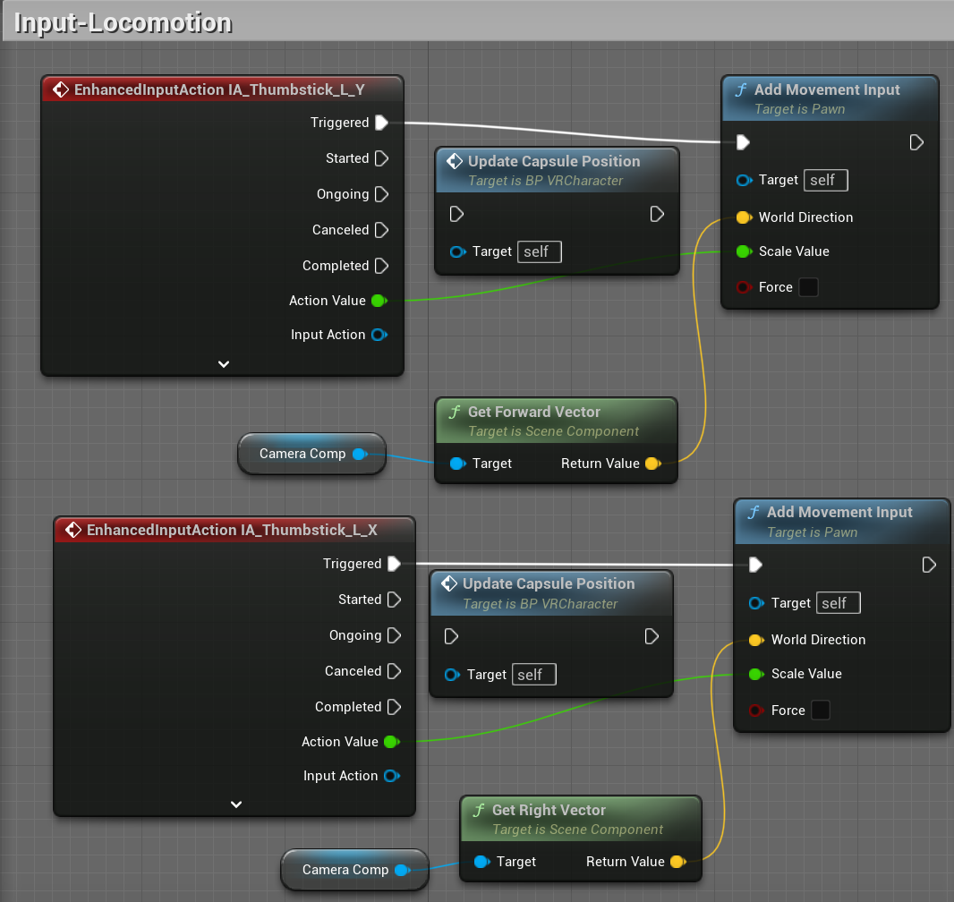//EnhancedInputComponent->BindAction(IA_LeftThumbstick, ETriggerEvent::Triggered, this, &AVRCharacter::Func1);