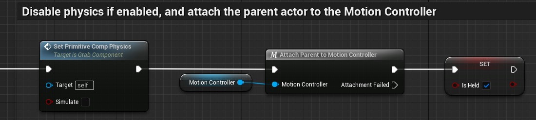 GrabType이 free일 경우 Physics를 끄고 Motion Controller에 붙인다. isHeld변수를 true로 해 준다.