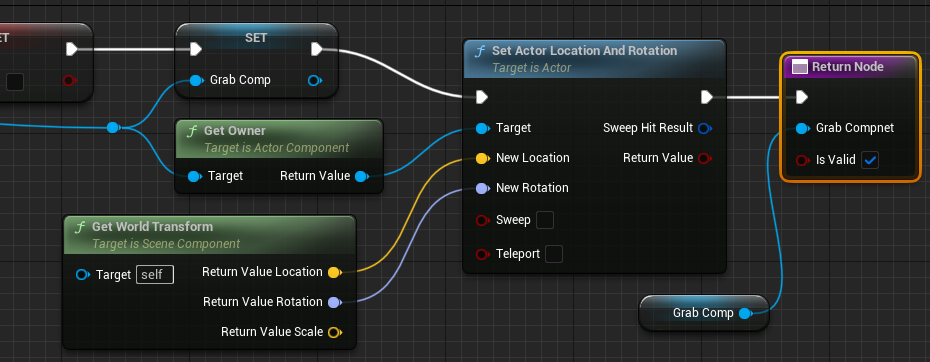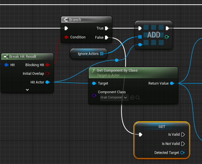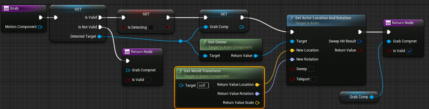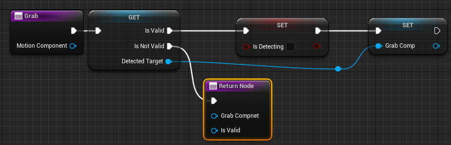 노드끝에 SET Detected Target노드를 추가해주고 Hit된 GrabComponent를 설정해준다.