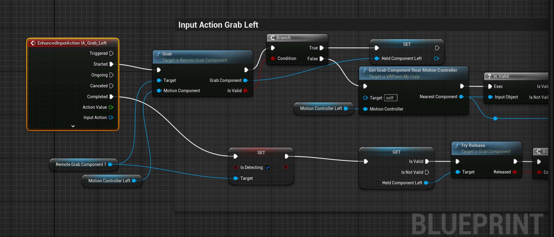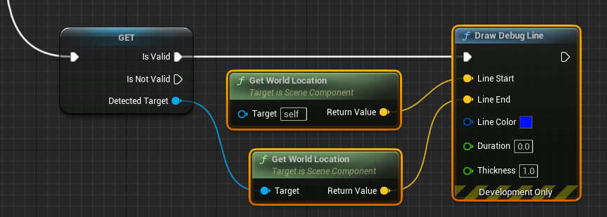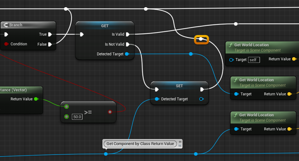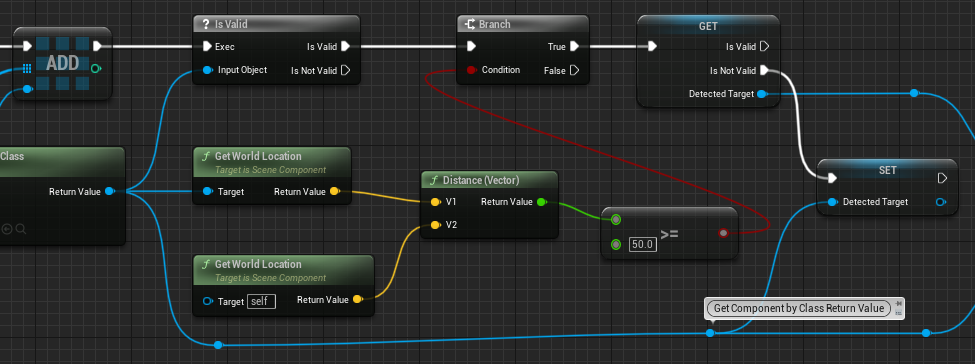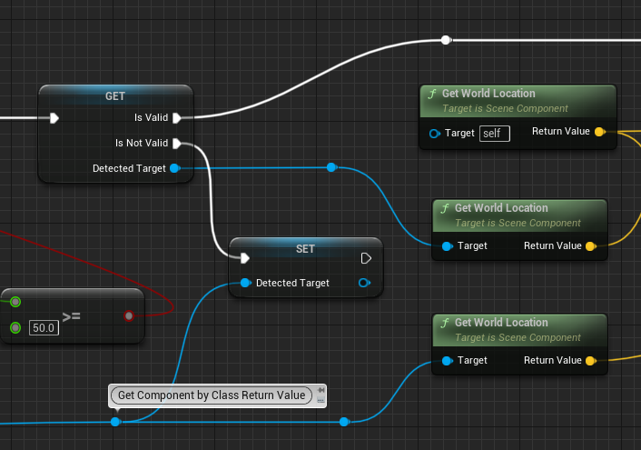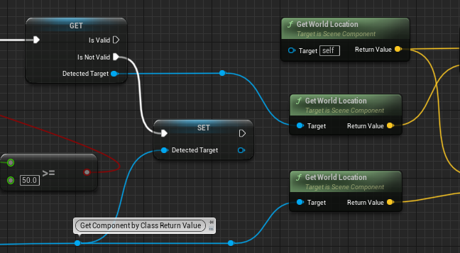 컨트롤러와 잡을 물체와의 거리가 50이상 떨어져 있다면 DetectedTarget에 설정해준다. Get Detected Target노드위를 우클릭하 ConvertToValidatedGet으로 변환하면 아래와 같이 나온