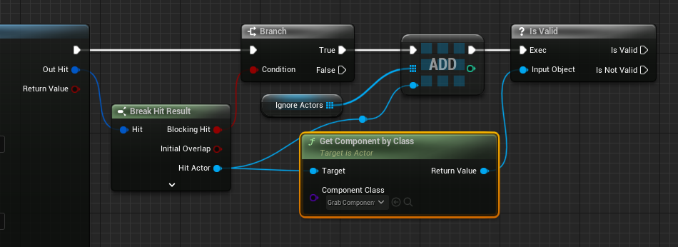 Hit된 Actor가 GrabComponent를 가지고 있다면. IgnoreActors배열에 추가해준다. Unique로 해주는게 좋을듯 하다.