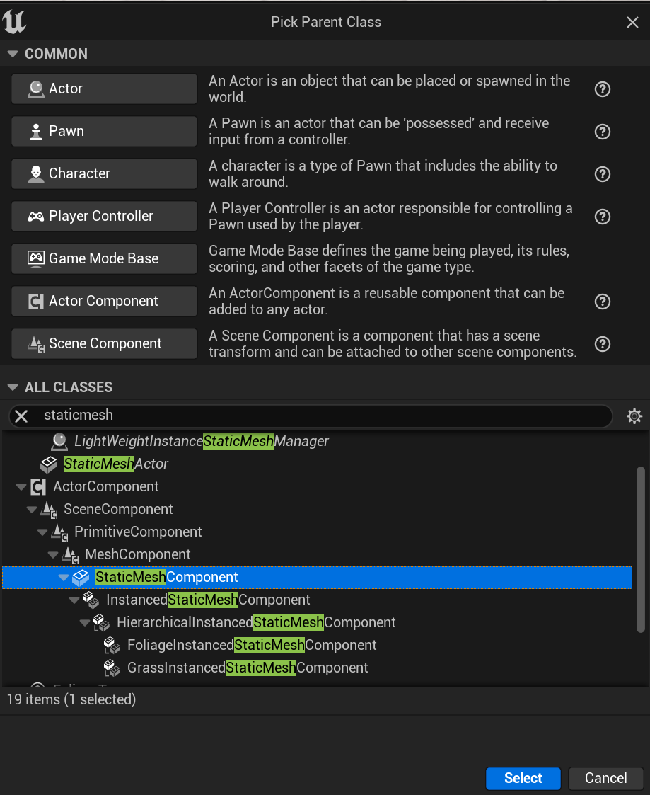 StaticMeshComponent를 부모로 RemoteGrabComponent를 만든다