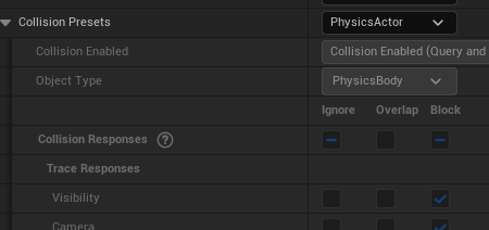 GrabComponent에서 Physics를 컨트롤 한다. 콜리젼 세팅이 PhysicActor로 바뀐다. 따라서 PhysicBody를 끄는게 좋다