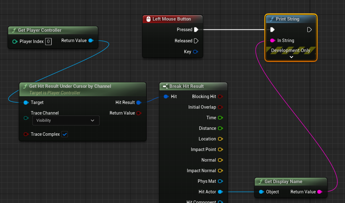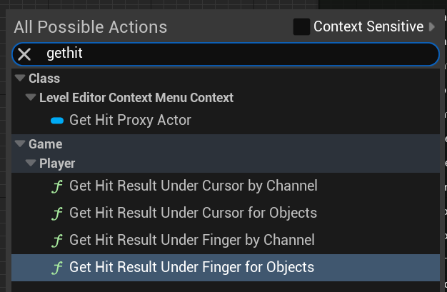 Tick으로 안하고 좌클릭 이벤트후 GetHitresultUnderCursor함수를 이용했다. 이 노드를 추가할때 Context를 꺼야한다.