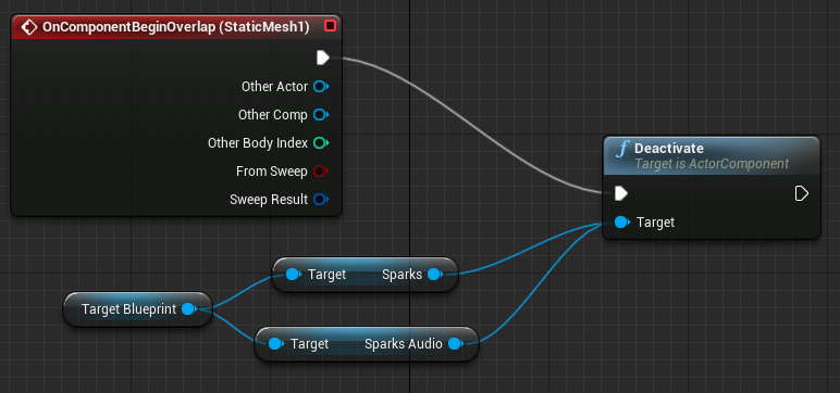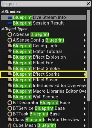 - 위의 스파크는 (시작용 콘텐츠에 포함된) Blueprint_Effect_Sparks 애셋입니다.