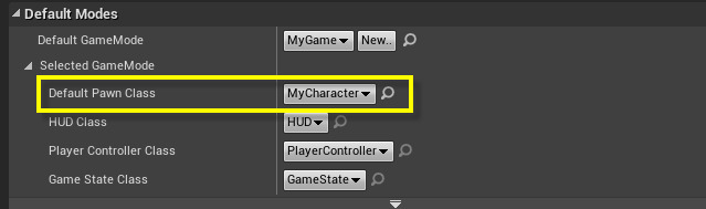 - Default Pawn Class 에 할당된 캐릭터 블루프린트 (플레이 가능 캐릭터)가 접근하고자 하는 타깃 블루프린트 입니다.Default Pawn Class 는 편집 - 프로젝트 세팅 의 맵 & 모드 섹션에서 확인할 수 있습니다.