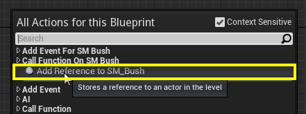 - 그래프에 우클릭 하고, 레벨에 있는 덤불로의 레퍼런스를 추가합니다.