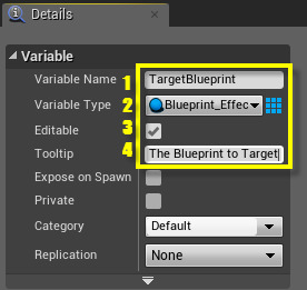 - 변수 유형 - 접근하고자 하는 블루프린트 유형이 되어야 할 것입니다.