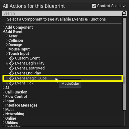 - 그래프에 우클릭 한 다음 이벤트 추가 아래, Event Magic Cube 이벤트를 선택합니다.