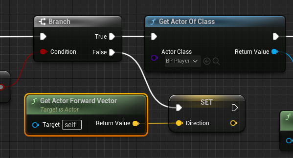 Branch 의 False의 경우 앞으로 나아가게 Forward Vector를 direction변수에 설정해 줍니다.