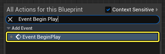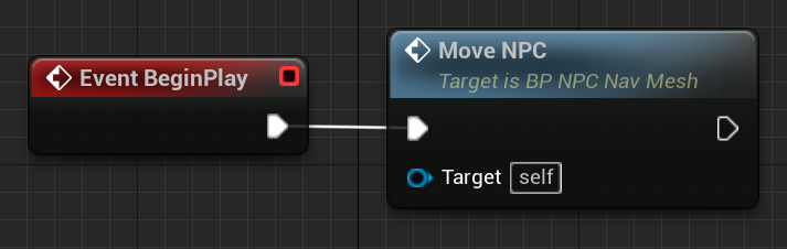 - 이벤트 그래프 를 우클릭한 뒤 이벤트 BeginPlay 를 검색하고 선택합니다. BeginPlay 이벤트 노드에서 드래그하여 MoveNPC 를 검색하고 선택합니다.