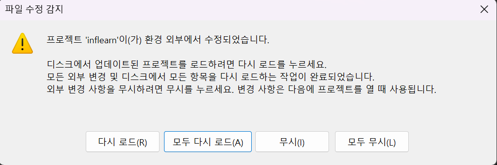 - Visual Studio로 이동해서 다음과 같이 모두 다시로드를 눌러줍니다.