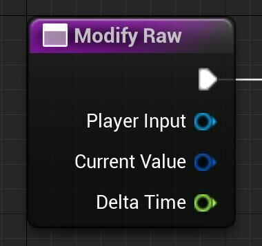 출력 파라미터는 벡터(Vector) 와 매우 비슷한, 3개의 float 값을 포함하는 입력 액션 값(Input Action Value) 입니다. 함수의 입력 파라미터에는 플레이어 입력(Player Input) 오브젝트, 입력 하드웨어 또는 이전 입력 모디파이어의 현재 값(Current Value) , 그리고 델타 시간(Delta Time) 값이 포함되어 있습니다.