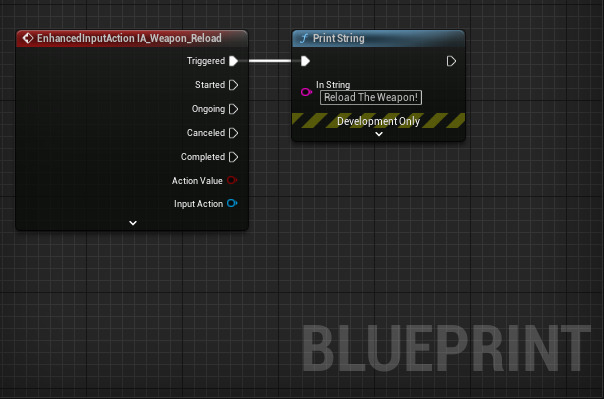 트리거 스테이트(Trigger State) 는 시작됨(Started), 진행 중(Ongoing), 트리거됨(Triggered), 완료됨(Completed) 및 취소됨(Canceled) 같이 액션의 현재 스테이트를 나타냅니다. '트리거됨' 스테이트를 자주 사용할 것입니다. C++과 블루프린트 모두에서 특정 스테이트에 바인딩할 수 있습니다.