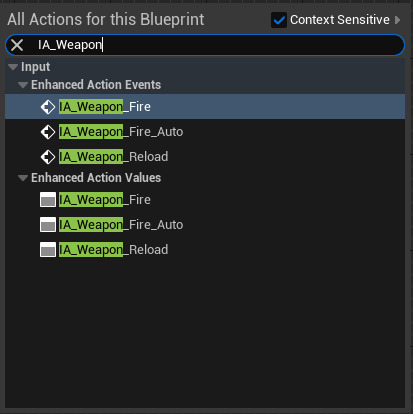 블루프린트에서 입력 액션 리스너를 추가하려면 블루프린트 이벤트 그래프에서 우클릭하고 입력 액션 데이터 에셋 이름을 입력하면 됩니다.