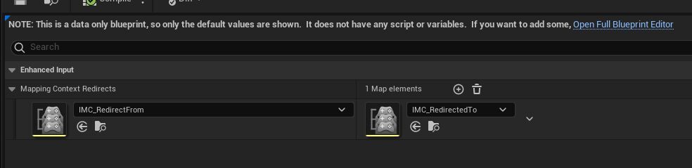 향상된 입력 플랫폼 데이터(Enhanced Input Platform Data) 클래스를 기반으로 블루프린트를 만들 수 있습니다. 이는 게임에 플랫폼별 옵션을 추가하기 위해 빌드할 수 있는 베이스 클래스입니다. 기본적으로 여기에는 입력 매핑 컨텍스트의 맵이 포함되어 있어 하나의 컨테이너에서 다른 컨테이너로 리디렉션할 수 있습니다.