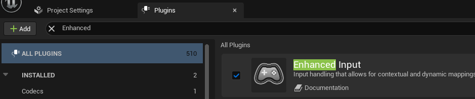 플러그인 세팅에서 Enhanced Input을 찾아 설치하고 언리얼 엔진을 재시작한다.