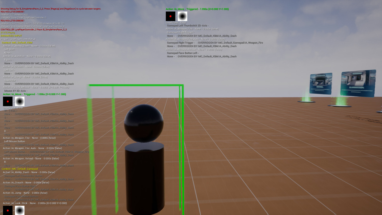 showdebug enhancedinput 을 사용하면 프로젝트에서 사용하는 축 매핑과 사용할 수 있는 입력 액션을 표시합니다.