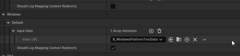 이 리디렉트를 적용하려면 프로젝트 세팅(Project Setting) > 향상된 입력(Enhanced Input) > 플랫폼 세팅(Platform Settings) > 입력 데이터(Input Data) 에 추가합니다.