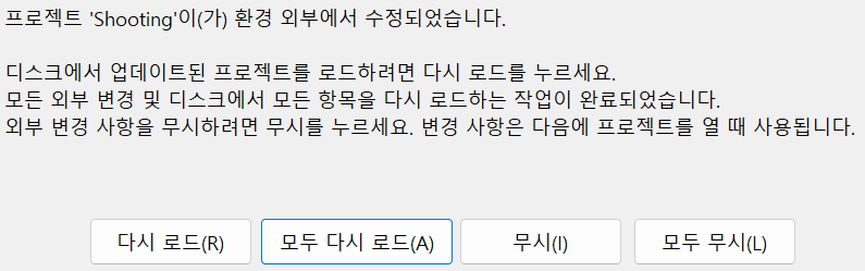 VisualStudio로 이동해서 모두 다시로드를 클릭하고 편집을 시작합니다.