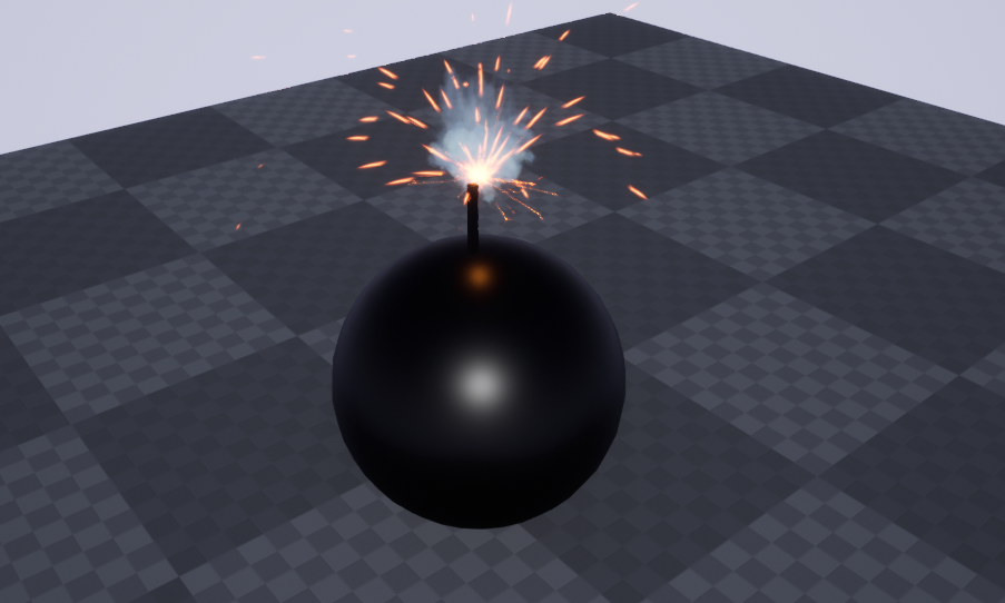 샘플 프로젝트는 폭탄 오브젝트가 하나 있으며 키보드 "B"키는 누르면 점화되어 3초 뒤에 폭발합니다.