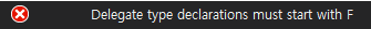 델리게이트는 자료형 이름 앞에 "F"를 붙여야합니다.