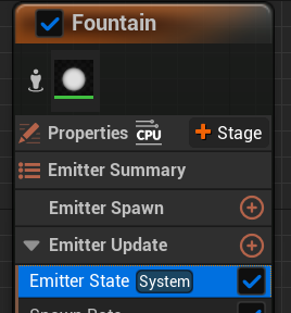 Emitter State의 Life Cycle Mode를 System으로 변경한다.