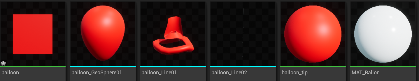 언리얼 컨텐트 폴더로 끌어주고 FBX를 import한다. 파일이 여러개 생기므로 Ballon폴더를 만들어 이전에 만든 머터리얼과 함께 옮겨준다.