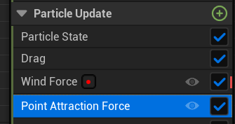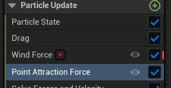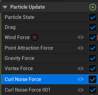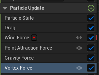 Particle Update의 에셋을 다음과 같이 정리하고 Wind Force를 선택해 설정을 바꿔준다