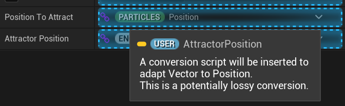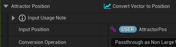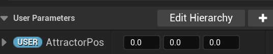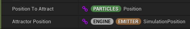 끌어다 놓으면 다음과 같이 표시되고 연결된다. 이 변수 이름은 나중에 블루프린트에서 FX가 인스턴스를 Attractor하는 타겟으로 사용된다.
