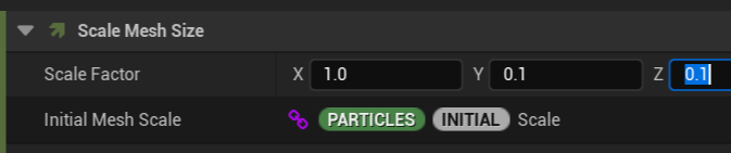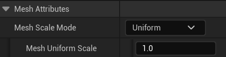 파티클 스폰의 Mesh Scale Mode를 Uniform Scale을 1.로 설정한다.