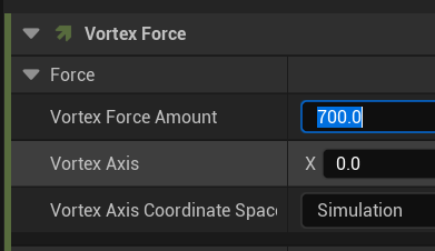 Particle Update에 Gravity Force를 추가한다. Vortex Force로 추가한다.700으로 설정하면 용돌이 치기 시작한다.